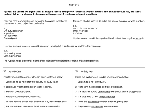 Hyphens Worksheets Teaching Resources